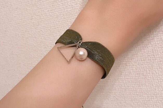 △モチーフ×コットンパールのついたヘアブレスレットです。